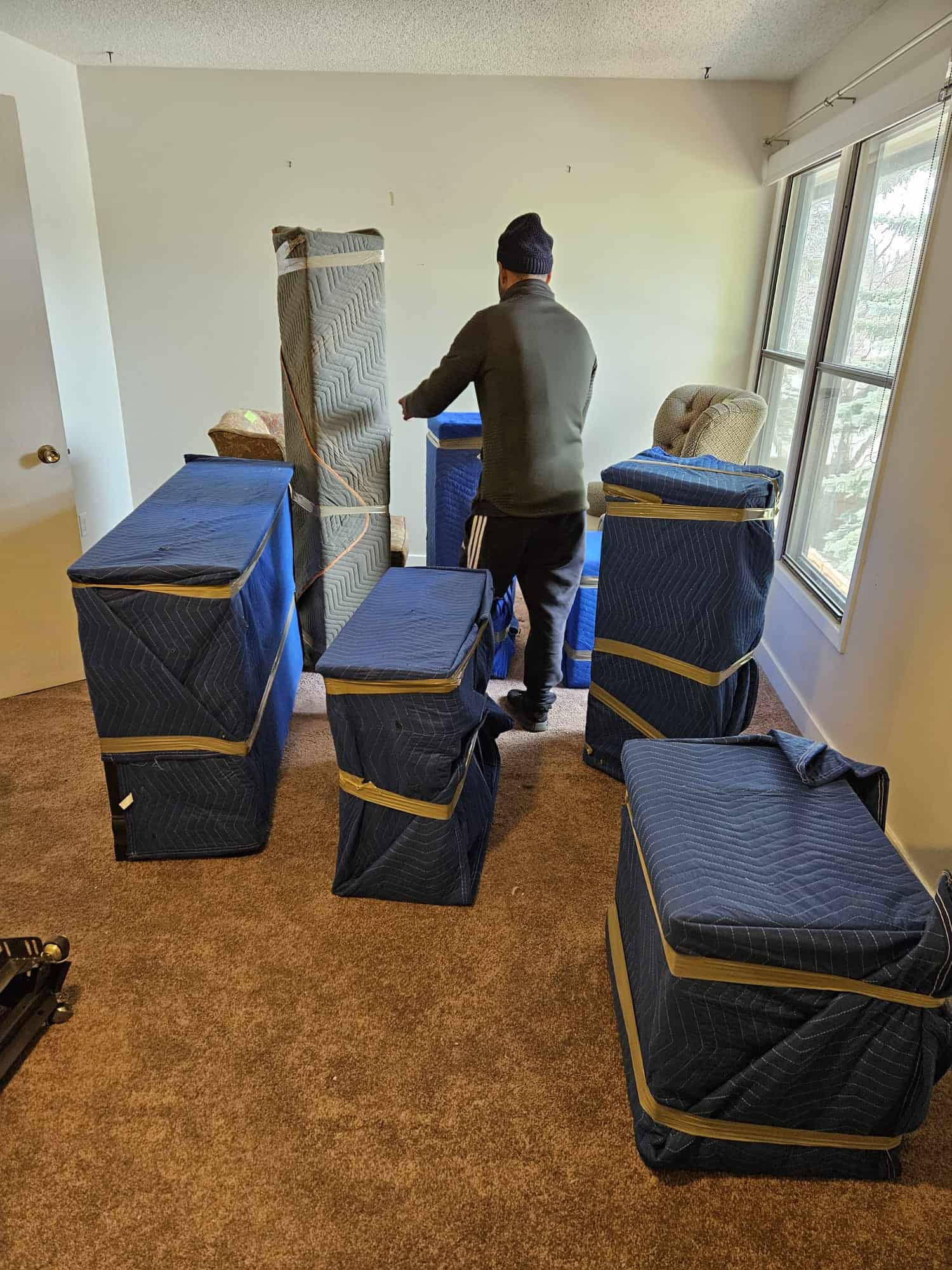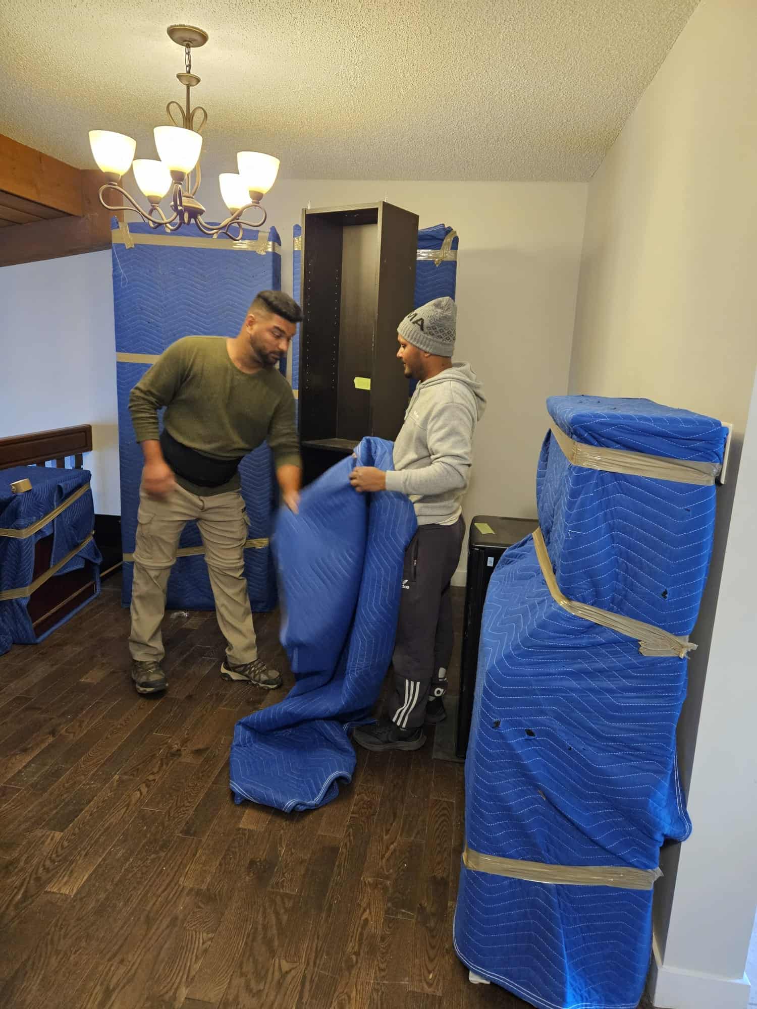 Photo Gallery Professional local movers preparing for a move in Calgary. Furniture and household items securely packed in a moving truck by Galaxy Movers Calgary. Professional moving services by Galaxy Movers in Calgary. Furniture packed in plastic wrap ready for moving, showcasing professional packing services by Galaxy Movers in Calgary. Professional Calgary movers loading furniture into a moving truck. Professional movers protecting furniture during a local move. Professional movers packing household items in Calgary for a smooth relocation process. Professional appliance moving services in Calgary by Galaxy Movers. Professional movers packing a truck with household items for a smooth relocation. Galaxy Movers team carefully loading furniture into a moving truck in Calgary for a smooth relocation. Professional movers handling a large stainless steel storage container outside a residential garage in Calgary. Professional moving company packing and transporting household items in Calgary. Moving boxes packed for a move in a bright room with large windows, ready for transport. Modern Calgary apartment with furniture and packing supplies for a smooth move. Team of movers preparing a truck for a seamless move in Calgary. Furniture moving preparation with wrapped sofa and packing materials in Calgary. Organized moving truck with boxes, storage bins, and equipment ready for a move in Calgary. Professional packing and moving services in Calgary. Galaxy Movers team safely carries a large, wrapped box down the stairs in a residential home. Professional movers packing and organizing household items in a moving truck. Moving truck packed with furniture, boxes, and supplies ready for a Calgary move. Expert Calgary movers preparing for a smooth relocation. Galaxy Movers offers reliable and efficient moving services in Calgary. Interior of a modern living room with furniture wrapped for moving, showcasing careful handling by Galaxy Movers in Calgary. Professional moving services in Calgary with secure packing and transportation. Professional moving supplies ready for a smooth relocation process. Professional movers ready for local and long-distance moves in Calgary. Professional moving company preparing for a move in Calgary.